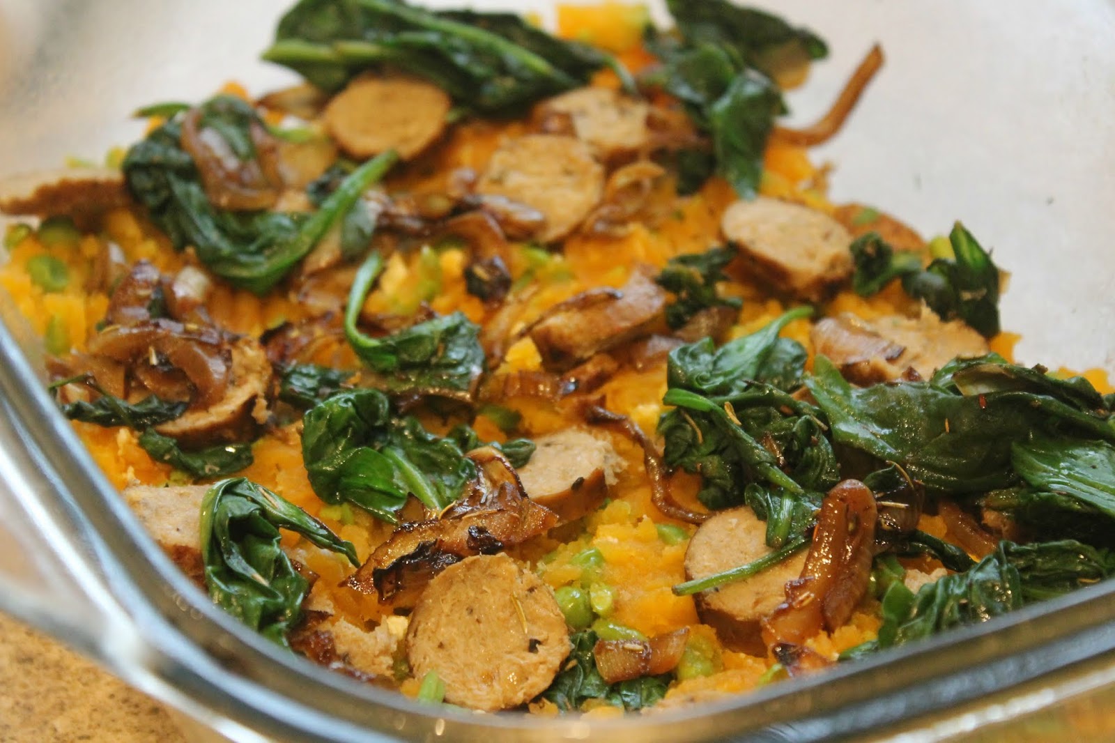 Sweet Potato, Sausage and Spinach Pie Recipe